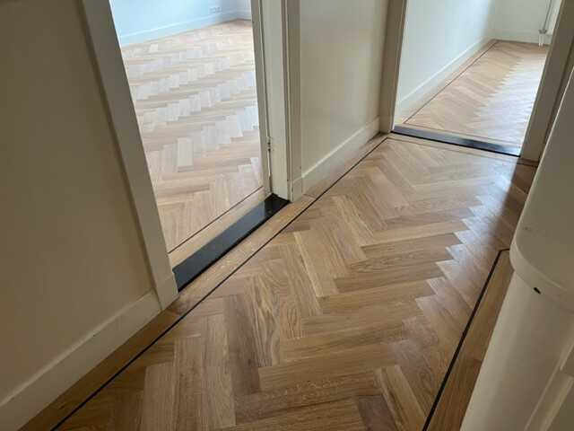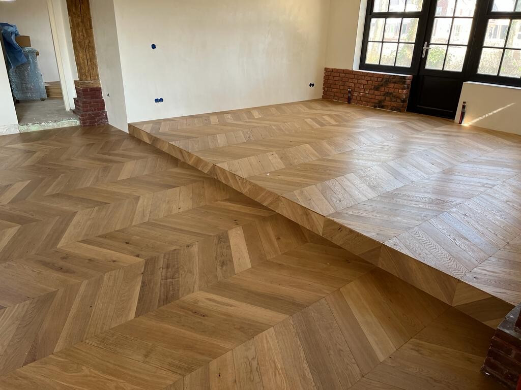 Bij dit project hebben we een vloer gecreëerd die de essentie van duurzaam vakmanschap laat zien. Het patroon is een Hongaarse punt, uitgevoerd in massief eiken op een mozaïek ondervloer. Deze tapis vloer, direct op de ondervloer verlijmd, combineert traditionele elegantie met moderne duurzaamheid. Het resultaat is niet alleen een blikvanger maar ook een toonbeeld van kwaliteit. Dit project onderstreept onze toewijding aan het creëren van unieke, milieubewuste interieurs die generaties lang meegaan. Zo brengen we bij elk project schoonheid en functionaliteit samen.